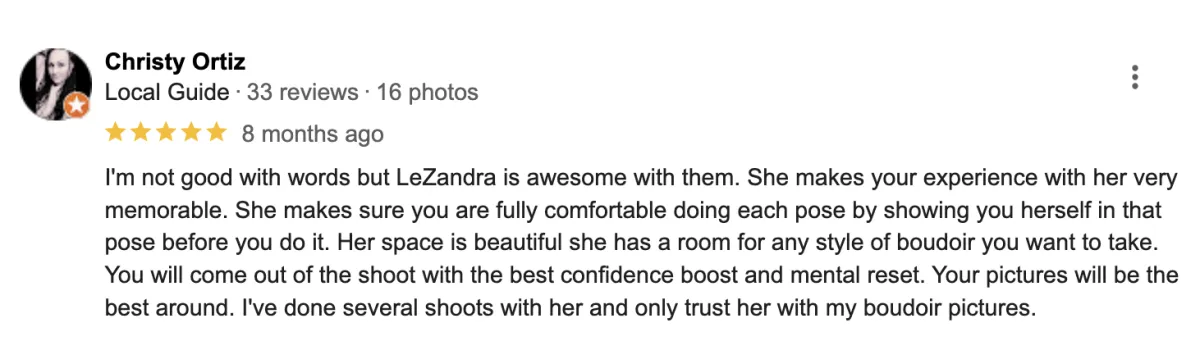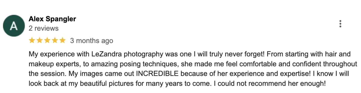 "They were the highest quality photos I’ve ever received, and they captured me in ways I never thought possible.